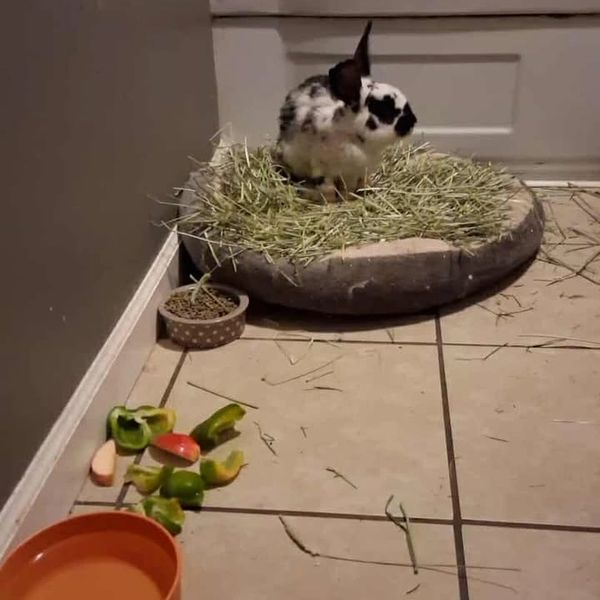 He would thrive in a peaceful environment with patient people who can help him build confidence. He’s not a fan of loud noises or chaotic spaces. Older children or adults who know how to handle shy rabbits gently would be perfect.